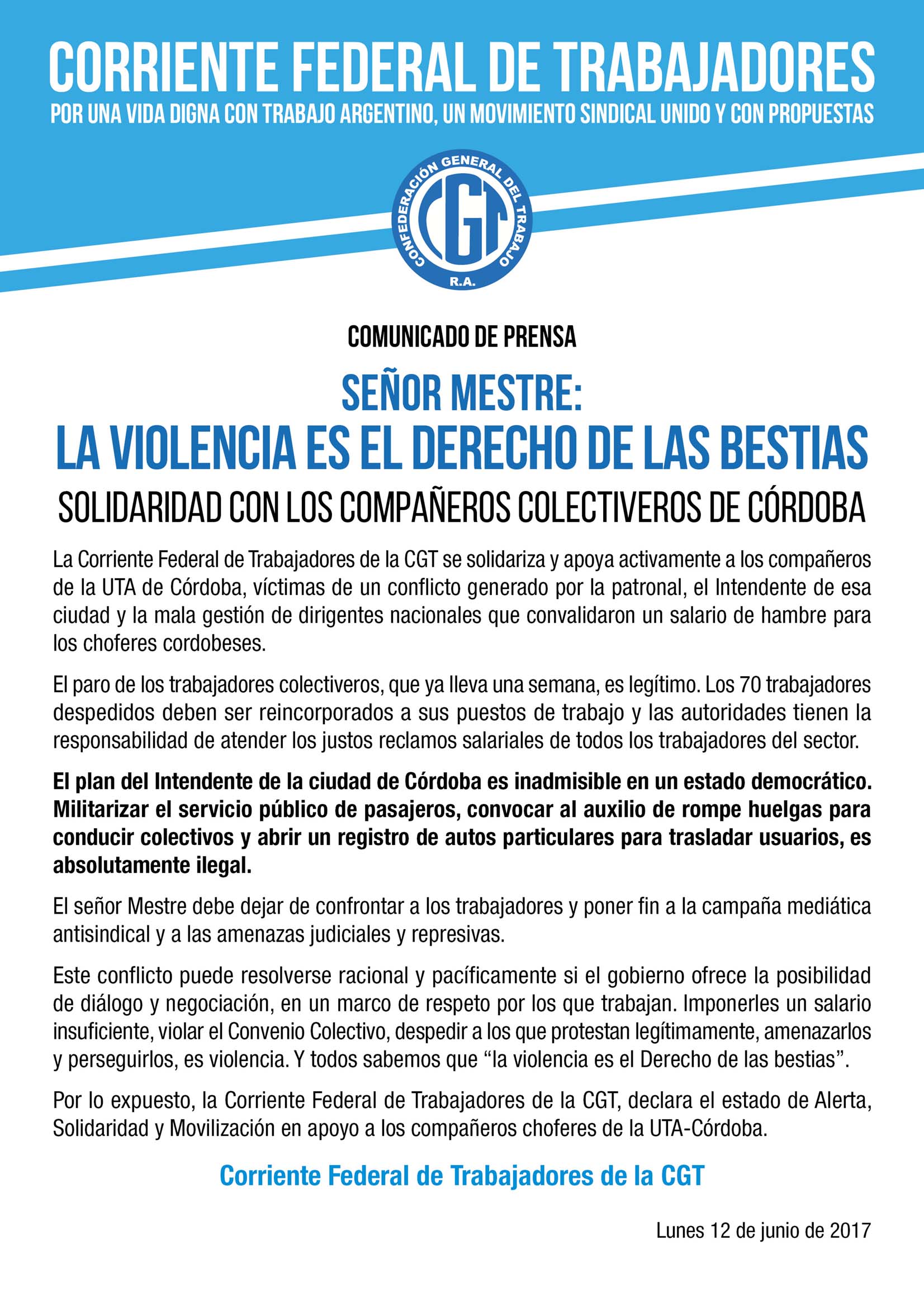 Señor Mestre: La violencia es el derecho de las bestias